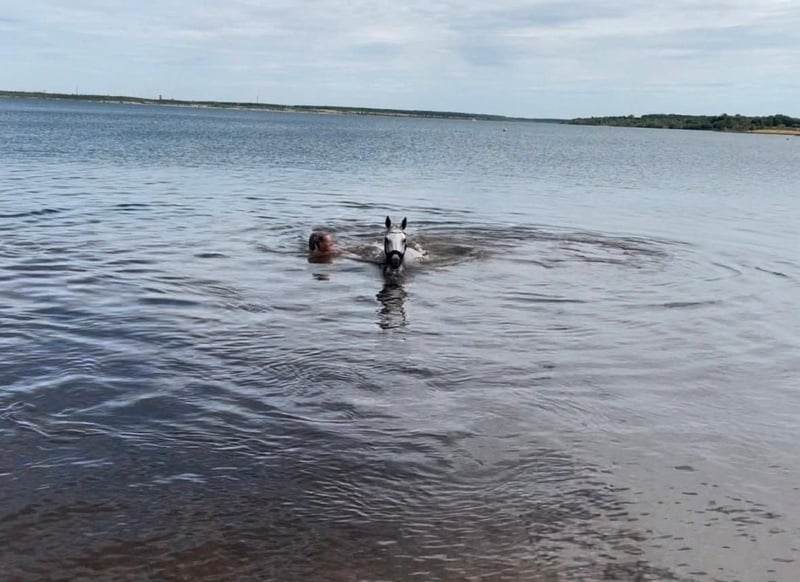 Fabienne hat ein Stockmaß von 1,68m und ist 16 Jahre alt. Da sie sehr spät angeritten wurde, merkt man ihr das Alter nicht an. Sie ist brav im Umgang und geduldig mit Kindern, jedoch ist sie kein Anfängerpferd, da sie Sicherheit vom Reiter benötigt. Sie ist sensibel und hat viel Go. Die letzten Jahre wurde sie hauptsächlich dressurmäßig geritten. Die Lektionen der Klasse L sind sicher abrufbar, sowie sämtliche Seitengänge. Außerdem springt sie beide Wechsel und kann passagieren. Zur Abwechslung wurden niedrige Gymnastiksprünge eingebaut. Im Freispringen zeigte sie sich sehr talentiert. Sie ist geländesicher, aber in der Gruppe entspannter und hat keine Angst vor sämtlichen großen/ lauten Fahrzeugen. Ich kann sie mir gut bei einem ambitionierten Reiter mit Gefühl und Durchsetzungsvermögen vorstellen, ggf. auch als Einstiegspferd in die Vielseitigkeit. Sie liebt Wasser. Regelmäßiges Hängerfahren ist sie gewöhnt, egal ob alleine oder zu zweit, sie ist in jeder Situation unkompliziert zu verladen. Dies ist kein Notverkauf. Die Stute wird nur in fördernde und liebevolle Hände mit artgerechten Haltungsbedingungen abgegeben. Aktuell steht sie in einer gemischten Herde in einem Offenstall. Videos können gerne per WhatsApp verschickt werden und für alle weiteren Fragen kann gern eine Nachricht mit Telefonnummer hinterlassen werden.