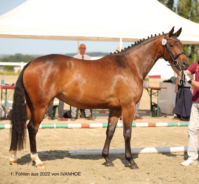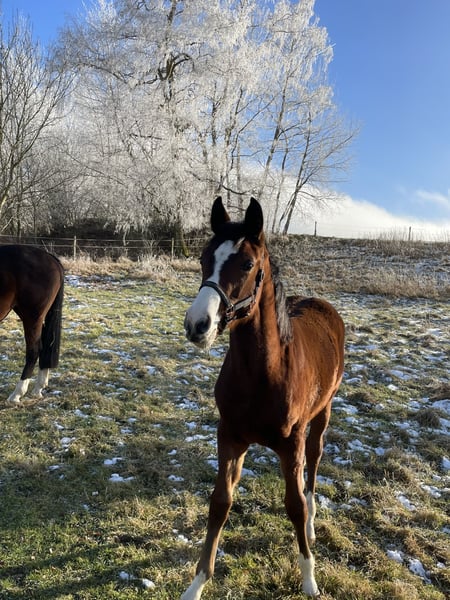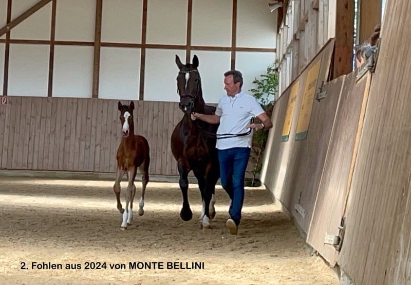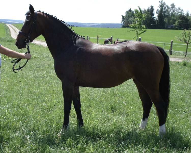 Mit UNITED bekommen Sie eine ganz tolle Deutsche Sportpferd Stute, die sich in vielerlei Hinsicht bisher bestens bewährt hat. Gezogen aus einer Stute von LEVAL reicht die Linie weiter über die bekannten und bewährten Vererber L‘ AMI und den Holsteiner LUCARLO. Die Vaterlinie über ACAJOU - ASTI SPUMANTE - ARGENTINUS, bietet ebenfalls bestes und sowohl in Zucht als auch im Sport, hocherfolgreiches Blut. Die typvolle Stute mit ihrem hübschen Stutengesicht und dem großen Auge, zog bei jedem Auftritt, egal ob Zucht oder Sport, die Blicke des Publikums magisch an. Selbst erfolgreich im Sport unterwegs, konnte sie 4 jährig bereits ihre erste Siegerschleife in einer Springpferdeprüfung der Klasse A** mit nach Hause nehmen. Zur Zucht wurde die Stute erstmals 2021 eingesetzt, und stellte gleich mit ihrem 1. Stutfohlen auch hier ihre Qualität unter Beweis. Dreijährig qualifizierte sich ihre Tochter vom Trakehnerhengst IVANHOE, 2025 zum Sächsisch-Thüringischen Stutenchampionat und sicherte sich somit die Anwartschaft zur Staatsprämienstute. Ihr zweites und bisher letztes Stutfohlen von MONTE BELLINI, geb. 2024, besticht ebenso mit einer tollen Typierung und großartigen Bewegungen, was ihr die Qualifikation zum Fohlenchampionat des Zuchtverbandes Sachsen-Thüringen bescherte. Leider konnten wir dort nicht an den Start gehen. Zu erwähnen sei noch, daß die Stute nach erfolgten Besamungen immer sehr gut aufnahm und uns damit mehrmalige Besamungen und Tierarztbesuche erspart blieben. Da wir aus Platz- und Altersgründen selbst nicht mehr weiter züchten werden, haben wir uns dafür entschieden, UNITED, falls die Rahmenbedingungen passen, abzugeben und einem Züchter mit viel Herz und Leidenschaft die Chance für weitere tolle Fohlen zu bieten. Falls Ihr Interesse geweckt ist, stehe ich Ihnen sehr gerne für weitere Fragen zur Verfügung.