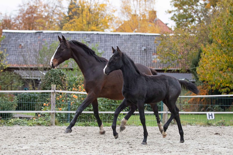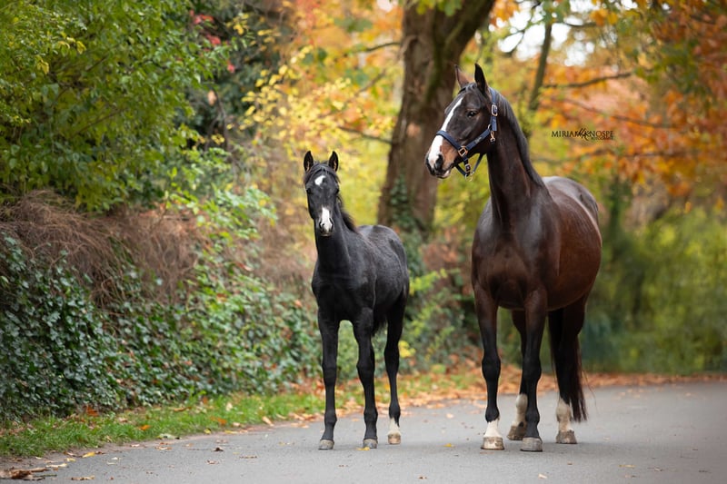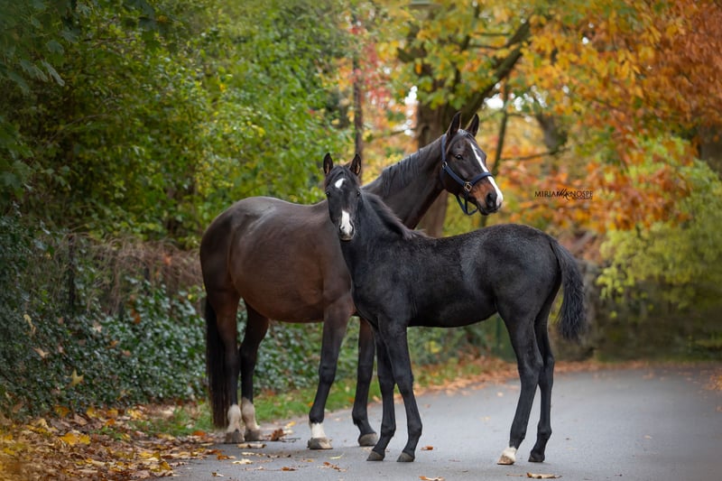 For sale is an exceptionally typy 8-month-old mare from our own breeding. This promising young mare combines the best qualities of her Hanoverian dam, such as willingness to perform and excellent movement, with the calmness and submission typical of Lusitanos. Our young mare already displays good, energetic basic gaits, combined with speed and remarkable willingness. She has a harmonious conformation and a lot of expression. She is lively, curious, and very people-oriented. She is raised in a well-structured mixed herd in an open stable, enjoys pasture from spring to autumn, and is familiar with age-appropriate foal handling. Thanks to her interesting bloodline combination, she is ideally suited for future use in working equitation, dressage, or versatile leisure and sport activities in combination. She is a true heart project from responsible, own breeding and is only to be entrusted to caring hands. Her mother is also from our own breeding, which has been producing high-quality horses for generations. The bloodline of Conrad Hogrefe from Eickeloh is renowned worldwide. Her sire has been in our possession since he was a young horse and has competed up to MasterClass level in working equitation. Thanks to his excellent temperament, he also has experience in various shows, film productions, theater performances, and exhibitions.