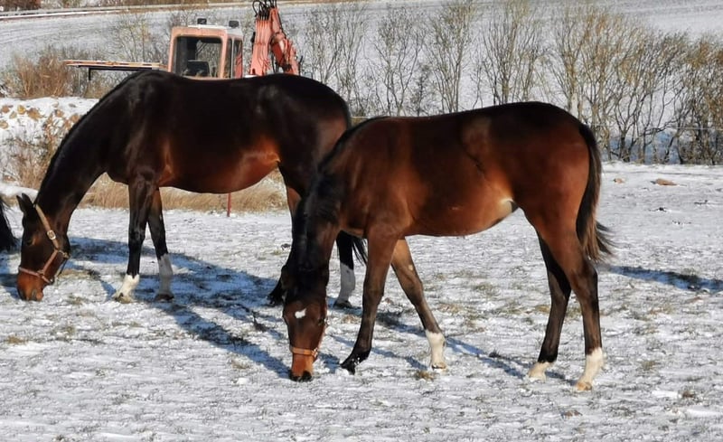 Zum Verkauf steht eine typvolle braune Jährlingsstute von Moritzburger Hengst Cassoulet aus einer Trakehner Stute von Saint Cyr x Aristo. Sie wächst derzeit in einer gemischten Herde auf. Ist schmiedefrom und halfterführig. "Sie präsentierte sichzur Fohleneintragung rassetypisch mit femininer Ausstrahlung, geprägt von einem ausdrucksstarken Gesicht, klarem Auge und harmonischem Seitenbild. Im Gebäude ist ein gutbemuskelter trockener Hals hervorzuheben, sowie eine schöne schräggelagerte Schulter, wodurch sie trotz ihres leicht überbauten entwicklungsbedingten Formates, sich trotzdem elastisch durch den Körper bewegt und dennoch natürliche Bergauftendenz zeigt. Auch der Galopp ist hervorzuheben mit einer gut durch den Körper gesprungenen Galoppade und einem aktiven Hinterbein. Insgesamt ein gelungenes Stutfohlen mit Ausdruck, klarem Fundament und Bewegungsqualität." Die Bewertung zur Fohleneintragung: Typ: 9 Gebäude: 8 Bewegung: 8 Der Vater CASSOULET ist Prämienhengst und vereint in seinem Pedigree Leistungsgenetik für höchste Ansprüche. Dies wird durch die springbetonte Endnote von 8,65 im 30-Tage-Test bestätigt. Die Mutter KATE stammt aus der Kayleen (Trakehner Stutenlinie der Kassette 690 (T7A1 Kassandra)). Diese Linie ist bekannt für die Vererbung von Leistungsbereitschaft, Rittigkeit und Härte. Bei Fragen und zum Anschauen gerne melden.