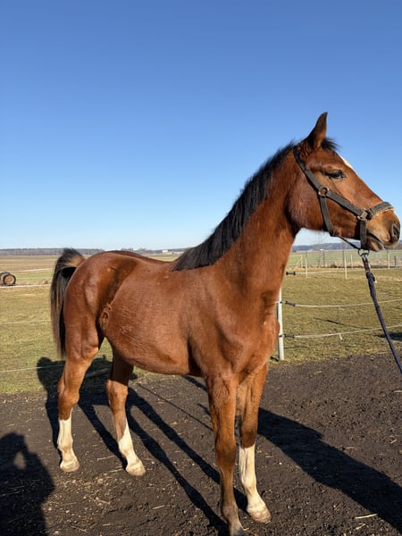 Verkaufe deutsches Sportpferd – Stute, geb. 2024 Zum Verkauf steht eine elegante und vielversprechende deutsche Sportstute, geboren im Jahr 2024. Die Stute zeichnet sich durch ihre beeindruckende Größe von 168 cm Stockmaß aus. Sie steht bei uns Zuhause und wird von uns selbst in einer Kleingruppe aufgezogen und ist deshalb sehr umgänglich und ist jegliche Alltagserfahrung gewöhnt. Sie ist sehr lebendig und lernfähig, weshalb sie sich sehr gut für den späteren Springsport eignet. Zudem ist sie eine Erscheinung, sie ist hübsch, groß und modern, alles was man eben erwartet. Ihr Vater Casallco ist selbst ein immer mehr aufsteigender Deckhengst in der Deckstation Schockemöhle und ist schon 1,60m Springen gegangen und platziert. Ihre Mutter ist ein Nachkommen des Cornet Obolensky, der ebenso zahlreiche 1,60m Erfolge vorzuweisen hat. Zudem ist er einer der erfolgreichsten Deckhengste unserer Zeit. Allerdings besitzt die Stute nicht nur moderne Klasse, sondern kommt auch über die Mutterlinie mit einer echten Blutlinie über Pilot und Landadel zurückgehend. Bereits Zwei von ihren Geschwistern gehen bereits erfolgreich im Sport. Bei Interesse gerne melden!