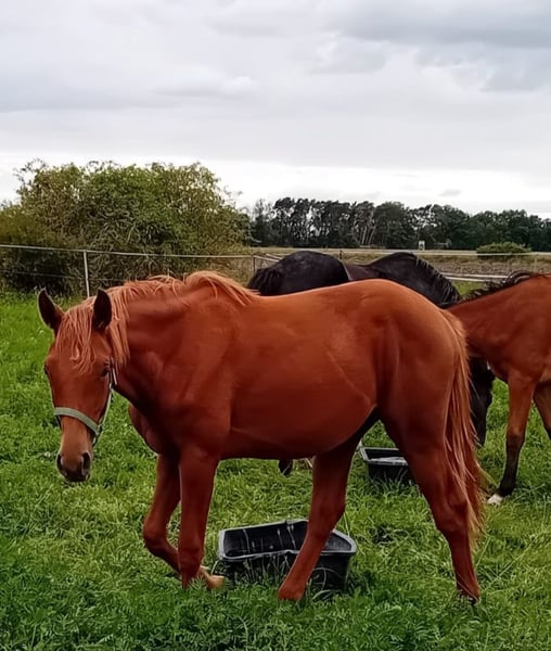 Nous proposons à la vente une élégante pouliche par Comanchero (par Comme Prèvu - le trois-quarts frère de Comilfo Plus (Christian Ahlmann)), issue d'une jument demi-sang par Chap I (par Cellestial), qui se montre décontractée et légère dans ses mouvements. La jeune femme ne séduit pas seulement par son apparence impressionnante dans une veste alezane foncée particulièrement chic, mais aussi par son charme et son caractère attachant. Son père Comanchero, qui a été approuvé lors des Oldenburger Hengsttage 2021, se présente doté d'une grande vue d'ensemble, d'une capacité infinie et d'une puissance pleine. Son galop spacieux et son type chic font de lui un accroche-regard absolu. Associé à la meilleure aptitude sous la selle et à la meilleure attitude, il est le grand espoir de la ferme Sosath pour le saut d'obstacles lourd. Lors de sa première année de compétition, Comanchero a remporté l'épreuve d'entrée du championnat des chevaux de saut de quatre ans à Rastede avec une note de 8,6 et s'est classé en finale de son premier cheval de saut de niveau L. Il a passé le test de prédisposition court à Vechta en tant que meilleur étalon de quatre ans avec une note globale de 8,44. En 2023, Comanchero s'est qualifié pour le championnat fédéral d'Allemagne et s'est classé dans des épreuves de chevaux de saut jusqu'au niveau M. Cette année, Comanchero a poursuivi sur sa lancée et s'est déjà classé plusieurs fois en haut du classement dans des épreuves de saut d'obstacles de classe M avec des notes allant jusqu'à 8,7. Il s'est également qualifié à Westergellersen pour le Championnat fédéral d'Allemagne des chevaux de saut de six ans. Vous trouverez de plus amples informations sur son père sur : https://sosath.com/de/hengste/detail/comanchero L'aîné des descendants de la mère a déjà participé avec succès à des épreuves de jeunes chevaux jusqu'à 1,35 m et a été vendu aux États-Unis. La mère de Calea transmet à ses descendants de la fortune et une très bonne technique à l'obstacle ainsi qu'un chic particulier. La jument à succès Chakaria (victorieuse en 2024 dans le Rolex Grand Prix d'Aix-la-Chapelle) du champion européen André Thieme a également Chap I pour père. N'hésitez pas à nous contacter pour de plus amples informations ou pour convenir d'une date de visite.