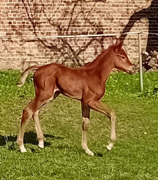 Te koop is een elegant merrieveulen van Comanchero (v. Comme Prèvu - de driekwart broer van Comilfo Plus (Christian Ahlmann)) uit een halfbloedmerrie van Chap I (v. Cellestial), die los en lichtvoetig beweegt. De jonge dame maakt niet alleen indruk met haar prachtige verschijning in een bijzonder chique donker voskleurig jasje, maar ook met haar charme en beminnelijke karakter. Vader Comanchero, die op de Oldenburger Hengstendagen 2021 werd goedgekeurd, presenteert zich met veel overzicht, oneindig veel vermogen en vol vermogen. Zijn bodembedekkende galop en chique type maken hem tot een absolute blikvanger. Gekoppeld aan de beste rijeigenschappen en instelling, is hij de grote hoop voor de zware springsport op Hof Sosath. In zijn eerste jaar op concours won Comanchero de opwarmtest voor de kampioenschappen voor vierjarige springpaarden in Rastede met een score van 8,6 en plaatste hij zich in de finale van zijn eerste springproef in de elementaire klasse. Hij slaagde voor de korte aanlegtest in Vechta als beste vierjarige hengst met een totaalscore van 8,44. In 2023 kwalificeerde Comanchero zich voor het Bundeschampionat en plaatste hij zich in proeven voor jonge springpaarden tot en met medium (M) niveau. Dit jaar kon Comanchero voortborduren op de successen van vorig jaar en heeft hij zich al meerdere keren hoog geplaatst in proeven voor jonge springpaarden op middelhoog niveau (M) met scores tot 8,7. Hij kwalificeerde zich ook voor het Bundeschampionat. Hij kwalificeerde zich ook voor het Bundeschampionat voor zesjarige springpaarden in Westergellersen. Meer informatie over de vader kunt u vinden op: https://sosath.com/de/hengste/detail/comanchero De oudste nakomelingen van de moeder hebben al met succes deelgenomen aan youngster rubrieken tot 1,35 m en zijn verkocht naar de VS. Calea's moeder geeft vermogen, een zeer goede springtechniek en een speciale stijl door aan haar nakomelingen. De succesvolle merrie Chakaria (zegevierde in 2024 in de Rolex Grand Prix in Aken) van Europees Kampioen André Thieme heeft ook Chap I als vader. Voor meer informatie of het maken van een afspraak voor een bezichtiging, aarzel dan niet om contact met ons op te nemen.