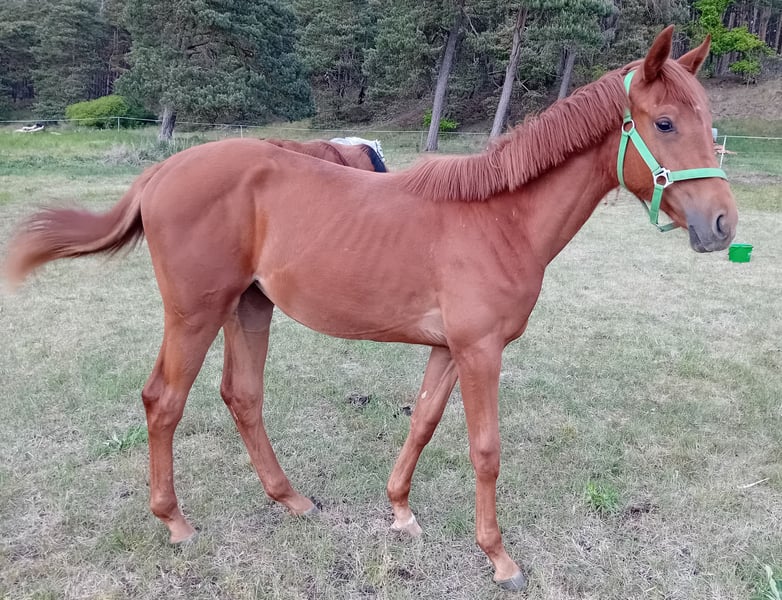 Zum Verkauf steht eine elegante 2-jährige Stute von Comanchero (v. Comme Prèvu - dem Dreiviertelbruder zu Comilfo Plus (Christian Ahlmann)) aus einer Halbblutstute von Chap I (v. Cellestial), welche sich locker und leichtfüßig in der Bewegung zeigt. Die junge Dame (geb. 04/2024) besticht nicht nur durch ihre beeindruckende Erscheinung in besonders schicker fuchsfarbener Jacke sondern auch durch ihren Charme und liebenswerten Charakter. Vater Comanchero, der bei den Oldenburger Hengsttagen 2021 gekört wurde, präsentiert sich ausgestattet mit großer Übersicht, unendlichem Vermögen und voller Kraft. Seine raumgreifende Galoppade und sein schicker Typ machen ihn zum absoluten Hingucker. Gepaart mit bester Rittigkeit und Einstellung ist er auf Hof Sosath die große Hoffnung für den schweren Springsport. In seinem ersten Turnierjahr gewann Comanchero mit 8,6 die Einlaufprüfung zum Championat der vierjährigen Springpferde in Rastede und platzierte sich im Finale in seiner ersten Springpferde L. Den Kurz-Veranlagungstest in Vechta absolvierte er als bester vierjähriger Hengst mit der Gesamtnote 8,44. 2023 qualifizierte sich Comanchero für das Bundeschampionat und platzierte sich in Springpferdeprüfungen bis zur Klasse M. 2024 konnte Comanchero an die Erfolge des letzten Jahres anknüpfen und sich mehrfach in Springpferdeprüfungen der Klasse M mit Wertnoten bis 8,7 hochplatzieren. Er qualifiziert sich außerdem in Westergellersen für das Bundeschampionat der sechsjährigen Springpferde. Im Rahmen der Oldenburger Hengsttage 2025 wurde Comanchero zum Hauptprämiensiegerhengst des Springpferdezuchtverbandes Oldenburg-International gekürt. Weitere Informationen zum Vater befinden sich unter: https://sosath.com/de/hengste/detail/comanchero Der älteste Nachkomme der Mutter war bereits in Youngster-Prüfungen bis 1,35 m Springen erfolgreich unterwegs und wurde in die USA verkauft. Caleas Mutter vererbt ihren Nachkommen Vermögen und eine sehr gute Technik am Sprung sowie besonderen Schick. Erfolgsstute Chakaria (2024 siegreich im Rolex Grand Prix in Aachen) von Europameister André Thieme hat ebenfalls Chap I als Vater.