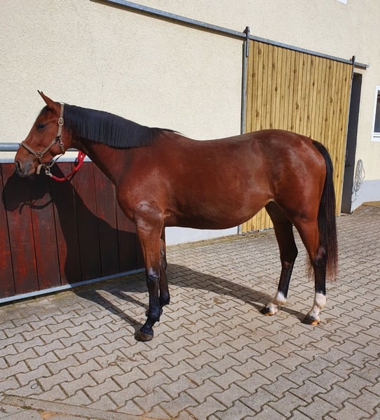 Zu verkaufen ist eine 3-jährige Stute (Abstammung Meganus PS x Chacco Blue) Tragend von Conthalou Die dritte Mutter ist die Vollschwester zu Deister