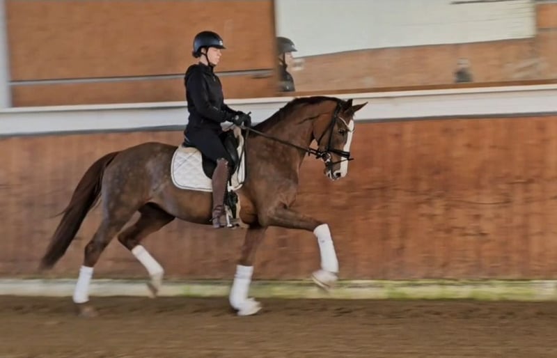 **Wir berechnen für das Probereiten eine Gebühr von 50€. Bei Kauf wird diese selbstverständlich angerechnet.** Zum Verkauf steht eine elegante und talentierte Dunkelfuchsstute, geboren im Jahr 2022. Neben ihren drei sehr guten Grundgangarten verfügt sie über eine beeindruckende Erscheinung, die sofort ins Auge fällt. Mit einem Stockmaß von 169 cm bietet sie die perfekte Größe für ambitionierte Reiterinnen und Reiter. Ihre Stärken liegen im Dressursport: sie zeigt viel Talent, Elastizität und eine angenehme Grundhaltung. Die Stute ist gerade angeritten, fein an den Reiter zu gewöhnen, und besitzt ein vielversprechendes Potenzial für den Turniersport oder den gehobenen Freizeitreitsport. Was sicherlich noch zu erwähnen ist, ist die absolute Unerschrockenheit dieses Pferdes. Sie ist gesund, regelmäßig geimpft und entwurmt, sowie gut im Umgang. Die Stute ist bereit für ihre nächsten Aufgaben und freut sich auf eine/n engagierte/n Reiter/in, der/die ihre Fähigkeiten weiter fördert. Sowohl für den Profi, als auch für den Amateur geeignet. Ein guter TÜV mit Hals und Rücken liegt vor. Bei Interesse, oder für weitere Informationen stehe ich gerne und ausschließlich unter 01738219886 zur Verfügung.