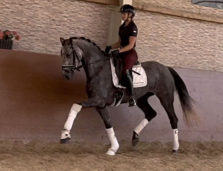 Dear Interested Parties, For appointment arrangements for trial rides, please send me a WhatsApp message. For further questions, I am available during the day via WhatsApp, and you can best reach me by phone between 4 PM and 7 PM. I look forward to hearing from you. www.angelina-devittorio.de ⭐️Ballerina⭐️ Age: 4 years (2022) Height: currently about 1.62 m, still growing Pedigree: Belantis x Rousseau Training Level: backed Vet Check: Good X-ray images available For sale is an outstanding dressage prospect with excellent quality. Ballerina impresses with her exceptional basic quality in all three gaits! This stunning gray mare presents herself as very well-behaved and clear-headed despite her young age. With enormous expression and an excellent work ethic, this horse shows impressive willingness to learn. A promising dressage prospect who wants to do everything right and has the potential for the big arena. She is age-appropriate, freshly backed, and always eager to please, absolutely clear-headed and already very pleasant to ride. She is also a true treasure in handling. Absolutely suitable for amateurs; of course, due to her age and training level, experience with young horses is a prerequisite. An absolute dream horse with outstanding quality and a clear-headed, well-behaved character. ⚜️Tel: 0171-3438949 ⚜️a.devittorio@web.de ⚜️https://www.ehorses.de/angelinadevittorio Facebook and Instagram Angelina De Vittorio