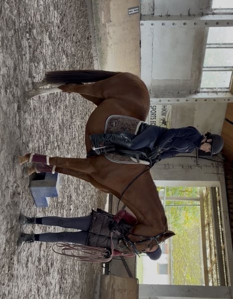 Yegua Westfalia, castaña, tamaño adulto aproximadamente 165 cm Se ofrece a la venta una prometedora yegua de tres años, hija de Depeche Mode, de madre Rockwell. Esta joven yegua destaca especialmente por su carácter encantador y su disposición para aprender. No solo impresiona por su aspecto, sino principalmente por su carácter. Siempre es amigable, nervios estable y curiosa. Posee tres excelentes movimientos básicos. Con una altura actual de aproximadamente 1,60 m, aún está en pleno desarrollo. Su estructura corporal correcta y su trasero enérgico proporcionan una base sólida para su futura carrera deportiva. Tiene todo lo necesario para convertirse en una excelente compañera de deporte: talento, buena línea de sangre y un buen carácter. En su manejo diario, es muy dulce, sencilla, clara de mente y totalmente amigable con los niños. Está familiarizada con el cepillado, levantar las cuatro patas y el trabajo en la cuerda. “Schnatti” está siendo montada con suavidad. Aprende muy rápido, es diligente y relajada. Es compatible con otras yeguas y actualmente vive con otras yeguas y caballos castrados. Por supuesto, ha sido vacunada y desparasitizada regularmente y se comporta de manera ejemplar con el herrador (patas desnudas). El padre de “Schnatti”, Depeche Mode, es un caballo de movimiento que destaca por su paso amplio y expresivo. Esto lo demuestra de manera impresionante como un semental de acción en las paradas de caballos. Además, el hijo de Damon Hill siempre muestra disposición para rendir y un carácter fuerte. Un resultado destacado obtuvo Depeche Mode en su prueba de 70 días en Neustadt (Dosse) en 2010, con una nota final centrada en la doma de 8,4, siendo la segunda mejor de la prueba. En esta evaluación, fue calificado con un 9,25 por su montabilidad por un jinete externo. Depeche Mode cuenta con numerosos descendientes con éxitos en concursos de caballos de cría y doma clásica. Precio: 10.000 € - 15.000 € Ubicación: Schönwalde-Glien Contacto: Antje Nitzschmann, 0170/48 12 889