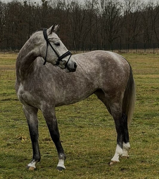 Verkaufe deutsches Sportpferd – elegante Apfelschimmel-Stute Zum Verkauf steht eine wunderschöne deutsche Sportpferd-Stute, geboren im Jahr 2021. Mit ihrem hübschen Gesicht zieht sie alle Blicke auf sich. Sie verfügt über ein Stockmaß von 167 cm und ist somit ideal für ambitionierte Reiterinnen und Reiter, die ein sportliches und elegantes Pferd suchen. Sie ist talentiert im Springen und zeigt bereits viel Potenzial in diesem Bereich. Die Stute ist freundlich, lernwillig und schonend ausgebildet, was sie zu einem vielversprechenden Partner für den Turniersport macht. Sie ist sehr anständig im Umgang und leicht zu reiten. Kleine Hüpfer über ein cavaletti machen ihr riesig Spaß. Im Freispringen entfaltet sie sich super und man kann erahnen was in ihr steckt. Sie stammt direkt vom Züchter und wird im Auftrag verkauft. Sie wurde regelmäßig entwurmt und dem Schmied vorgestellt. Bei Interesse oder weiteren Fragen stehe ich gerne zur Verfügung. Ein Besichtigungstermin ist nach Vereinbarung möglich. Bitte rufen Sie nicht anonym an, da dann kein Rückruf gewährleistet werden kann.