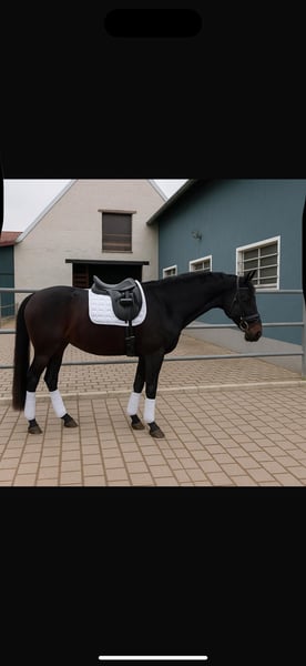 I am selling my three-year-old mare with a dream character to an ambitious rider. Journey was born here with me and has enjoyed excellent upbringing. Since March, she has been gradually accustomed to being ridden and is already a reliable riding horse! Her pedigree holds wonderful promise, and she is already showing great potential that can certainly lead to good successes with the right rider. A veterinary examination can be commissioned by the buyer if interested! She is also certainly interesting as a broodmare! In handling, she is a true gem, compatible with herds, easy to load, and excellent with the farrier! The current price is only valid until November, as there is the possibility to present her at the SLP.
