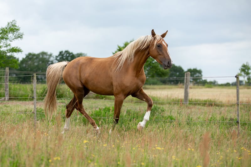 Carrie Forbes, alias „Furby“ vereint ein tolles Bewegungsspektrum mit absoluter Traumfarbe (dunkelpalomino). Sie ist bei uns auf dem Hof geboren, robust in einer altersgemischten Herde aufgewachsen und nun so langsam bereit für weitere Aufgaben. Ihr Vater, der Belissimo-Sohn Belvedere erreichte mit Stefanie Wolf eine Top-Ten-Platzierung bei den Weltmeisterschaften der Jungen Dressurpferde und wechselte anschließend in die USA, wo er von Nick Wagman weiter trainiert wird. Wagman sieht in ihm einen Kandidaten für die Olympischen Spiele 2028 in seinem Heimatland. Furbys Mutter Cortess stellte zahlreiche Championatsfohlen, u.a. die Staatsprämien-Stute Calamity Jane v. Bonds, die beim Deutschen Fohlenchampionat in Lienen den 4. Platz der dressurbetonten Stutfohlen belegte und sich dreijährig zum Bundeschampipnat qualifizieren konnte. Furby ist ein aufgewecktes Pferd mit viel Ambition für den Sport, weshalb wir uns wünschen, sie in fachkundige, fördernde Hände zu geben, Auch für die Zucht ist sie überaus interessant, da sie zu 50% ihr aufhellendes Cremegen weitergibt und damit die Zucht von Palominos und Buckskins ermöglicht.