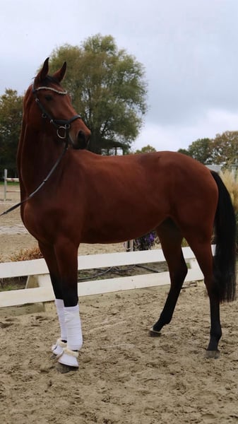 Feine Diva ist eine moderne, elegante Dressurstute mit viel Ausdruck und femininer Ausstrahlung. Ihr langbeiniges, leichtfüßiges Auftreten und die natürliche Bergauftendenz machen sie zu einer echten Nachwuchshoffnung für den Dressursport. Im Trab zeigt sie Schwung, Elastizität und ein aktives Hinterbein. Charakterlich überzeugt sie durch ihre Herzlichkeit, Lernbereitschaft und angenehme Rittigkeit. Sie ist aus eigener Zucht und mit sehr viel Herzblut aufgezogen worden – entsprechend liegt uns ihre weitere Förderung besonders am Herzen. Eine sportliche junge Dame mit Qualität und Herz – ideal für ambitionierte Reiter mit Blick in die Zukunft Preis zzgl. gesetzlicher MwSt.