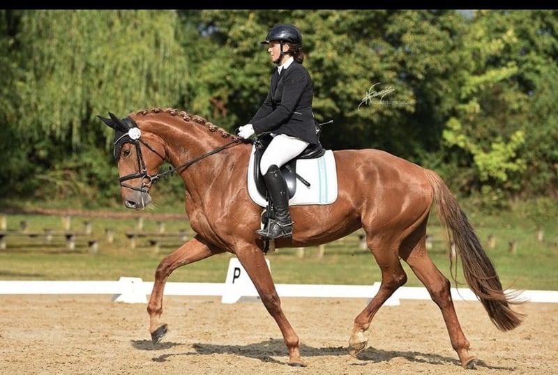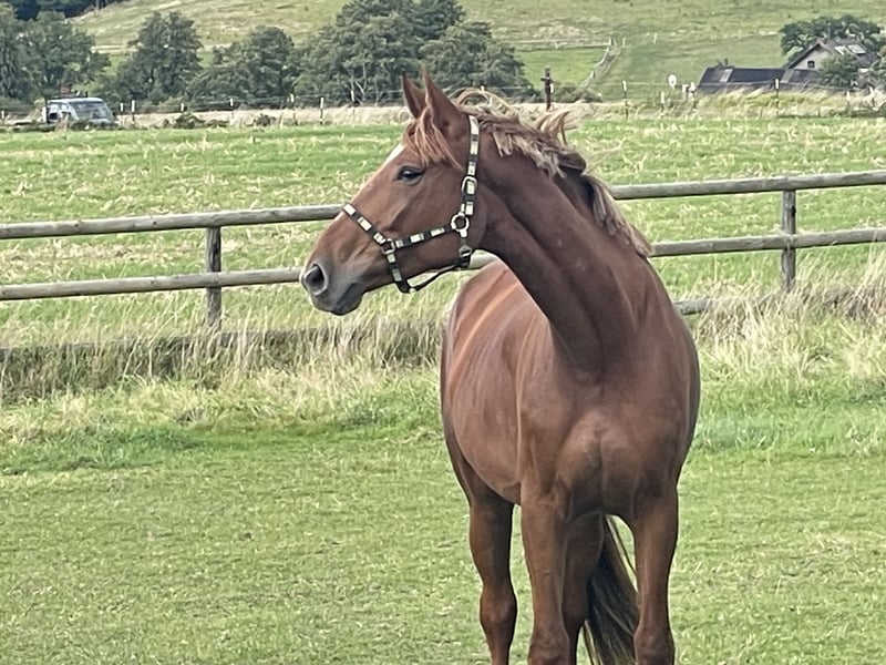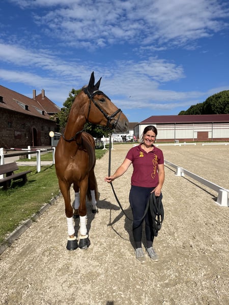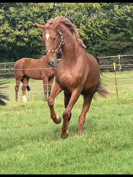 Ganz tolle, große, aber kompakte Stute von Scolari x Daily Deal nur wegen Bestandsverkleinerung direkt aus Züchterhand zu verkaufen! Sie ist seit März unter dem Sattel und zeigt sich super schwungvoll, sehr gelehrig und super brav und abgeklärt unter dem Sattel, egal ob in der Halle oder auf dem Platz, im Gelände oder auch auswärts. Sie lernt jeden Tag dazu und hat mächtig Muskulatur, Kraft und Ausdruck aufgebaut! Unter dem Sattel immer mit Go und Eifer und mega kopfklar bei der Sache! Natürlich ist sie noch in den Anfängen ihrer Karriere, hat aber bereits allererste Turnierluft geschnuppert. Verladen, fremde Umgebung, fremde Pferde: Natürlich noch altersentsprechend aufregend, aber alles völligst problemlos und brav! Eine tolle Stute, von der wir denken, dass sie eine Zukunft im großen Viereck haben wird. Sie gibt dem Reiter einfach ein mega Gefühl und macht jeden Tag wirklich großen Spaß!!! Auf der Elitestutenschau erhielt sie 2024 die Staatsprämienanwartschaft und ihre tollen GGA und ihr sehr aktives Hinterbein wurden herausgestellt. Ein besseres Pferd, das wirklich jeden Tag Freude bereitet, die wir in fördernde Hände verkaufen möchten! Bei uns geboren und behütet aufgewachsen. Sie ist in 2025 geröngt obB. Zähne sind gemacht, eingetragen und geimpft. Soleil ist sozial aufgewachsen und verträglich. Sie ist nur vorne beschlagen und steht sehr korrekt. Da es nun auf den Winter zugeht, ich eigentlich Springreiter bin und einige weitere junge Pferde in den Startlöchern stehen, sind wir im fairen Rahmen verhandlungsbereit. Ich reite und mag sie wirklich unfassbar gerne und finde sie toll!, deswegen auf gar keinen Fall ein Notverkauf! Sie wird nur in passende, fördernde, jungpferdeerfahrene Hände verkauft. Weitere Videos auf Anfrage.
