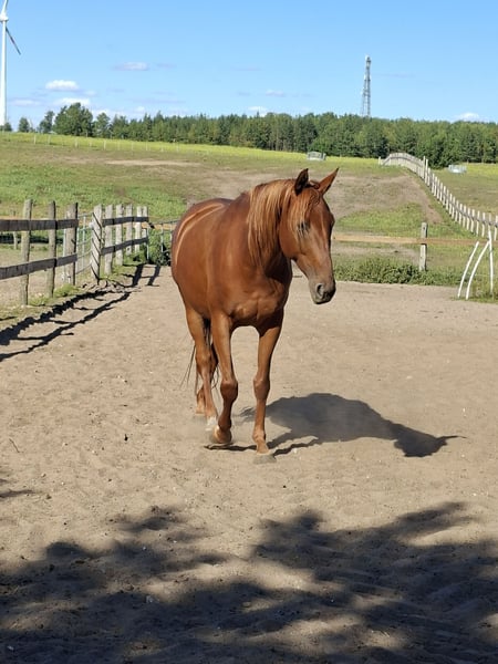 Wij bieden een prachtige en beweeglijke merrie aan van de succesvolle Anglo-Arabische hengst Magistral. Ze meet ongeveer 162 cm in schofthoogte en overtuigt niet alleen door haar exterieur, maar ook door haar indrukwekkende aanleg. De moeder was zowel succesvol in jonge paarden- als in eventingproeven, haar vader was tot de klasse CIC2* geplaatst – een sportief veelbelovende combinatie. De merrie valt op door een expressieve draf, een duidelijke, taktvaste stap en een krachtige, bergopwaarts gesprongen galop – ideale voorwaarden voor een carrière in de sport. Ze is leeftijdsgeschikt opgeleid, kent zadel, hoofdstel, longeren en vrijspringen. Vanwege tijdgebrek is ze tot nu toe nog niet verder opgeleid en zoekt nu een stimulerend thuis met perspectief. Een echt juweeltje voor ambitieuze ruiters!