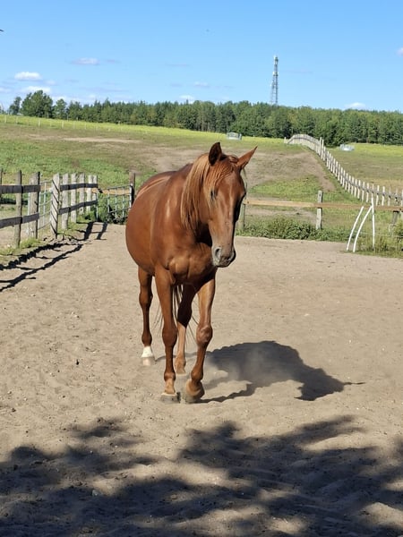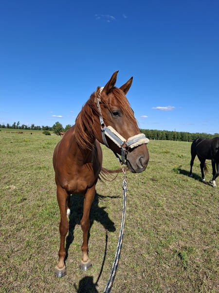 We offer a beautiful and athletic mare from the successful Anglo-Arab stallion Magistral. She measures approximately 162 cm at the withers and impresses not only with her conformation but also with her remarkable talent. Her mother was successful in both young horse and eventing competitions, while her father was placed up to the CIC2* level – a promising athletic combination. The mare stands out with an expressive trot, a clear, rhythmic walk, and a powerful, uphill canter – ideal prerequisites for a career in sports. She is appropriately trained for her age, is familiar with saddle, bridle, lunging, and free jumping. Due to a lack of time, she has not been further developed and is now looking for a nurturing home with prospects. A true gem for ambitious riders!
