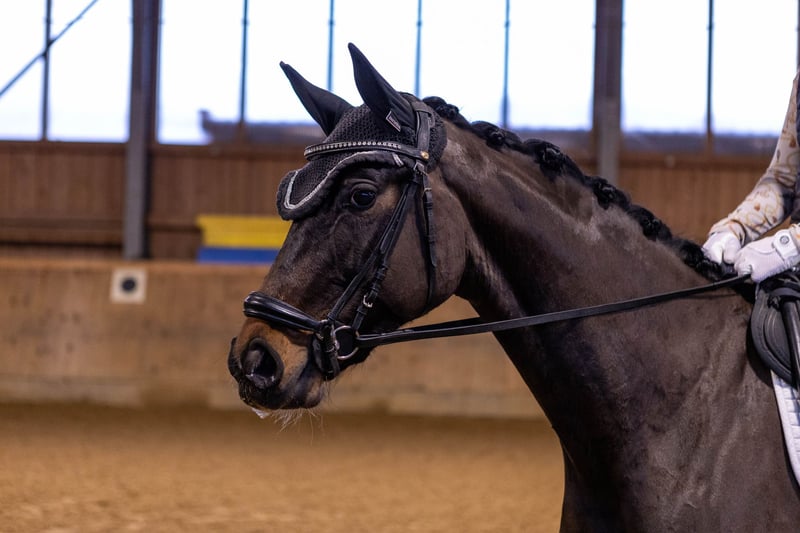 For sale is Finesse, a 5-year-old DSP mare by Fürst Romancier out of a Sir Donnerhall - Fidermark mother. Having been backed late, she is currently at a solid DPF A level and has competed once in a show, where she was immediately placed. She is now victorious and highly placed in DPF A with scores of up to 8.42, with a special highlight being a 9.0 for her suppleness. She is shoeing and loading friendly and goes well on trails. For further questions, feel free to contact via WhatsApp or by phone.