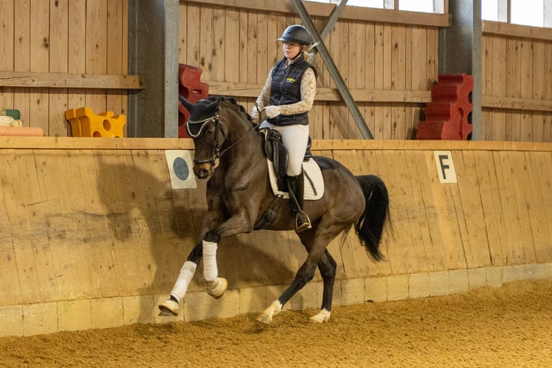 Na sprzedaż jest Finesse, 5-letnia klacz DSP po Fürst Romancier z matki Sir Donnerhall - Fidermark. Późno wsiadana, znajduje się na solidnym poziomie DPF A i jest delikatnie przygotowywana w kierunku DPF L. Obecnie odnosi sukcesy i zajmuje wysokie miejsca w DPF A z ocenami sięgającymi 8,42, przy czym szczególnie wyróżnia się ocena 9,0 za przejrzystość. Jest podkowy i transportowa, spokojnie radzi sobie w terenie. W przypadku dalszych pytań proszę o kontakt przez WhatsApp lub telefonicznie.