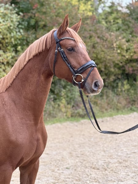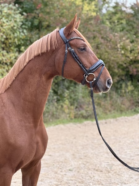 For sale is an elegant and talented German sport horse mare. Born in 2020, she measures 16.4 hh. She is ideally suited for advanced leisure riding and impresses with her willingness to learn, good temperament, and versatility. This promising mare is at the beginning of her training. She is healthy and regularly vaccinated. Her sire was a finalist at the Bundeschampionat, and her dam has successful results in S-level show jumping. Please feel free to contact me for more information or if you are interested. Viewing and test rides are available by appointment.