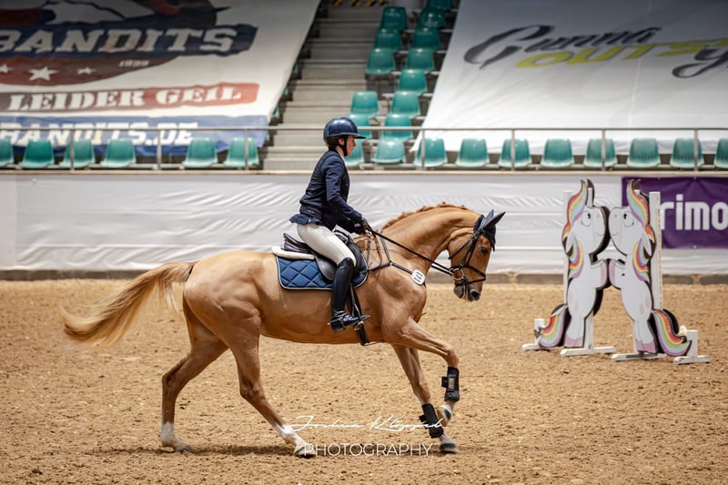 Conthalou es una hermosa y moderna hija de Conthargos en un tamaño práctico: ligera de movimientos y con buen galope, además de un trote natural bien equilibrado, lo que hace que su jinete disfrute de la preparación diaria. En el salto, Conthalou destaca por su actitud absolutamente excepcional: con solo 4 años, es completamente valiente y enfrenta cada nuevo desafío sin dudar. Además, posee una buena dosis de cautela, un carácter generoso, movilidad y reflejos excelentes, ¡una verdadera promesa en el salto! Esta bonita atleta de competición pudo debutar en su primera participación en concursos, en la que aún estaba algo "verde", logrando de inmediato dos victorias en pruebas de adaptación y una colocación en Silla de Equitación de Saltos A*. Con un entrenamiento adicional, sin duda crecerá para convertirse en una partner ambiciosa para el recorrido para el jinete exigente. También la línea de sangre de esta yegua no deja nada que desear. Su padre, Conthargos, está entre los principales reproductores actuales y ha producido numerosos caballos de alto rendimiento con éxito internacional. Entre ellos, los caballos olímpicos Conthargo-Blue (con Eiken Sato, JPN), Condara (Luis Fernando Larrazabal, VEN) y Cosa Nostra (Alberto Michan, ISR), además de otros descendientes que han competido con éxito hasta 1,60 m. La lista de sus hijos e hijas que participaron en el Campeonato Federal en Warendorf es larga, igual que la de sus hijos aprobados. Por parte materna, Conthalou también cuenta con una verdadera estrella: ¡Balou de Rouet! Con cerca de 100 descendientes que han competido con éxito hasta 1,60 m, varias medallistas en el recorrido olímpico de salto, en el Campeonato de Concursos Completos, numerosos hijos aprobados, ganadores en Grandes Premios, ¡y mucho más! El semental homónimo, Conthalou, que también combina estos dos destacados linajes, se clasificó para el Campeonato Federal a los 5 años y ya ganó en pruebas de salto hasta la categoría M*.