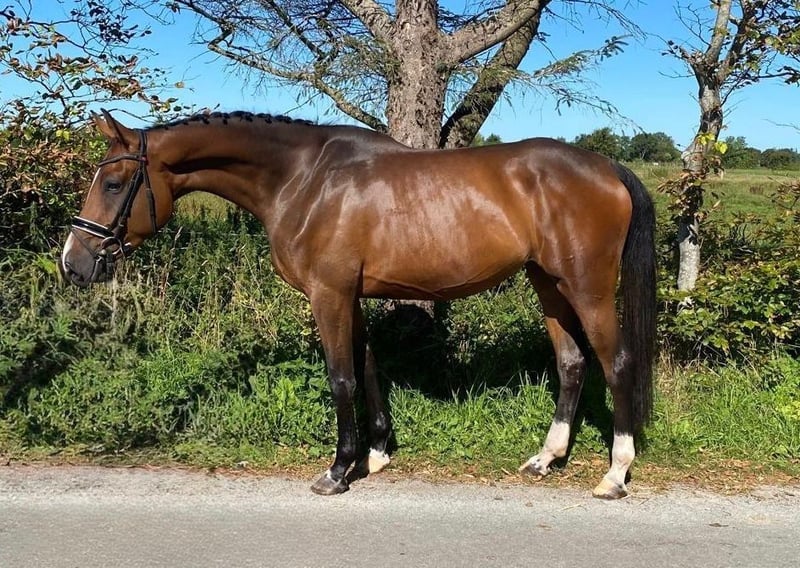 **Sales Advertisement: German Sport Horse** For sale is a talented mare, a German Sport Horse, born in 2021. This beautiful bay lady stands at 168 cm and impresses with her athletic build and elegant presence. With great potential in jumping, she is ideal for riders looking for a promising partner for competition or training. Her positive attitude and willingness to learn make her an easy companion. She is well-mannered, friendly in handling, and has already gained initial experience under saddle. This mare is suitable for both experienced riders and ambitious beginners who wish to further develop her talent. If you are interested or have any questions, please feel free to contact me. Visit us and see for yourself this wonderful horse!
