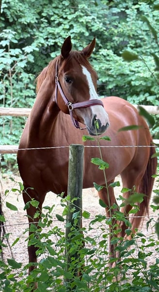 Wir verkaufen unsere außergewöhnlich typvolle und ausdrucksstarke 4-jährige Fuchsstute „Wendy“ mit einem Stockmaß von ca. 1,69 m. Diese beeindruckende Nachwuchsstute überzeugt durch ihre elegante Erscheinung im Hengsttyp sowie durch ihre herausragende Bewegungsqualität mit einer wundervollen Bergauftendenz und einer besonders modernen und beeindruckenden Vorderbeinmechanik. Wendy präsentiert sich stets hochmotiviert, sehr lernwillig, fleißig und konzentriert bei der Arbeit. Besonders hervorzuheben ist ihr positiver und aufmerksamer Charakter – sie zeigt sich interessiert, lernwillig und dem Menschen zugewandt, was sie zu einer absoluten Freude im täglichen Umgang macht. Unter dem Sattel zeigt sie sich mit hervorragender Rittigkeit und gibt dem Reiter ein stets angenehmes, feines Gefühl in der Hand. Sie lässt sich leicht und selbstverständlich durchs Genick reiten und überzeugt mit einer sehr konstanten Anlehnung. Zudem ist sie ausgesprochen sitzbequem und trägt den Reiter mit viel Balance und Körpergefühl, was ein besonders harmonisches Reitgefühl ermöglicht. Aktuell befindet sich Wendy auf einem soliden Dressurpferde-A-Niveau. Gute Röntgenbilder inklusive Rücken.