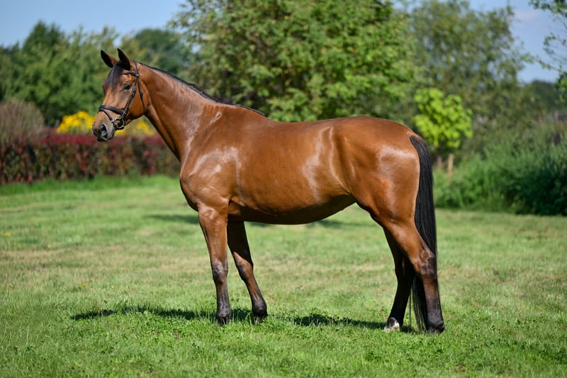 Diana H is the daughter of the renowned Holsteiner Verband stallion DEL ARKO, known for his rideability and willingness to perform. Her dam is by Chacco Blue, one of the world's most successful show jumping sires. She has been gently started under saddle and has had the opportunity to further develop during the important growth phase in the pasture. Recently, she has returned to work under saddle and is already demonstrating outstanding ability and great awareness in free jumping at the beginning of her sporting career. With excellent technique and awareness in free jumping, she impresses. A promising young horse that is ideally suited for further training by ambitious, experienced riders and trainers who focus on quality, lineage, and potential.