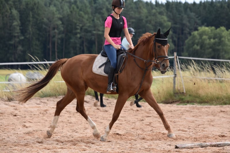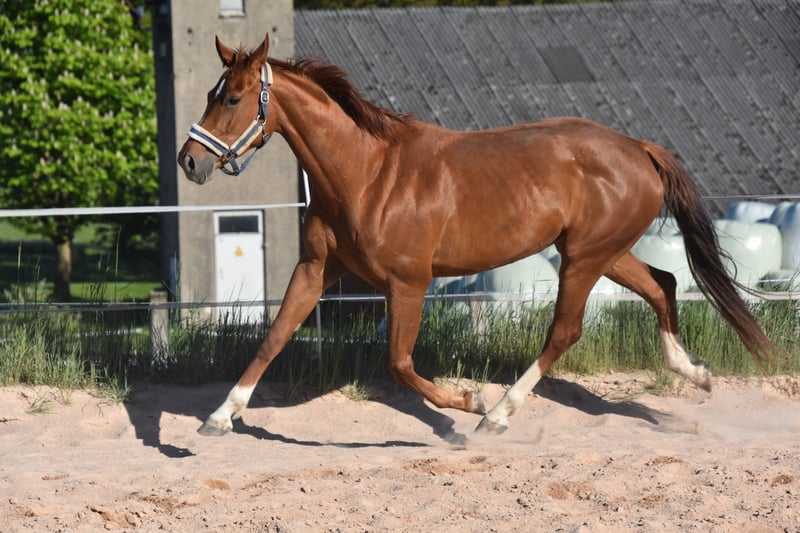 Zuverlässiges Pferd mit guten Grundgangarten. Korrektes Extrieur. Wegen Bestandsverkleinerung zu verkaufen. Keinerlei Unarten wie Beißen, Schlagen oder Buckeln.