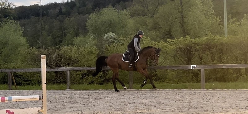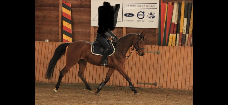 Zum Verkauf steht eine 6-jährige, talentierte Stute, die bereits in Springpferde A* und A** platziert ist. Sie überzeugt mit viel Go, arbeitet stets motiviert und zeigt sich auch am Sprung hoch engagiert. Ihr Vermögen macht sie besonders interessant für weitere Aufgaben im Springsport. Im Sommer ist sie brav im Gelände unterwegs (auch alleine), allgemein jedoch eher der zuckige, energische Typ. Kann auch mal einen Bocksprung machen, ist dabei aber nie böse. Im Umgang ist sie brav, sehr menschenbezogen, stets freundlich und unkompliziert. Außerdem ist sie schmiede- und verladefromm. Eine aktuelle AKU liegt nicht vor, Röntgenbilder der Beine aus 2023 können bei Bedarf beim damaligen Tierarzt angefragt werden. Sie ist sozial verträglich, weder stutig noch zickig. Fazit: Eine tolle Stute mit viel Herz, Vermögen und Motivation – ideal für ambitionierte Reiter, die ein sportliches Nachwuchspferd suchen. Sie wird verkauft, da mein 4-jähriger Wallach derzeit angeritten wird und ich beiden Pferden langfristig neben der Vollzeitarbeit und einem Leben außerhalb der Pferde leider nicht gerecht werden kann. Der Wallach ist jedoch sehr dominant, weshalb nach eigener Einschätzung die Stute eine leichtere Vermittelbarkeit aufweist. Videos auf Anfrage, können gerne per WhatsApp verschickt werden: 015151757185 Bei Interesse gerne melden! Bitte beachten, dass mind. A-Niveau und eine gewisse Sattelfestigkeit bei diesem Pferd Voraussetzung ist, um sie bedienen zu können.