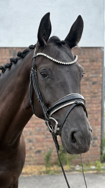 Beautifully looking black mare with very correct conformation and 3 fantastic basic gaits. Fantastic Girl was bought as a foal, raised, and gently started under saddle. She has won riding horse competitions and is placed in Drpf A. Currently, she is preparing for her first start in Drpf L. She is familiar with trail riding and is very well-behaved in handling. Good X-ray images are available! We would like to sell her to experienced and supportive hands.