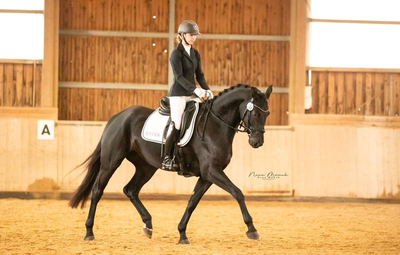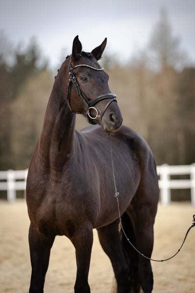 Diese super schicke Stute konnte 4 jährig bereits eine Reitpferdeprüfung gewinnen und bekam tolle Noten in Dressurpferde A! Sie ist leider schon immer sehr sensibel am Maul und hat sich beim reiten auch immer etwas gestresst. Sie geht einzelne L-Lektionen aber behält dabei leider keine Ruhe sondern wird unsicher und rennt davon, daher möchten wir ihr eine zuhause suchen in dem Sie ein paar tollen Fohlen bekommen dürfte und keinen Stress mehr beim reiten hat. Longieren macht sie total anständig und hört super zu. Ihr Hauptproblem ist es, gearbeitet zu werden mit Gewicht im Sattel. Die Stute ist total lieb im Umgang und hat auch keine Unarten wie Bocken, etc. sondern fängt einfach bei längerem Traben und galoppieren am kurzen Zügel, an ständig davon zu laufen und hektisch zu werden und einem den Zügel rauszuziehen oder über die Schulter abzuhauen. Diesen Stress wollen wir ihr ersparen. Wir hatten Sie vor kurzem in einer Klinik die uns leider bestätigte das sie einen Befund hat, weshalb es erklären könnte, warum sie beim reiten ein Problem hat. (dazu gerne privat bei Interesse genaueres, ist aber nichts was sie beeinträchtigt was die Zucht angeht) Sehr verträglich mit anderen Pferden ist sie außerdem! Weitere Infos gerne telefonisch unter +49 160 1662003