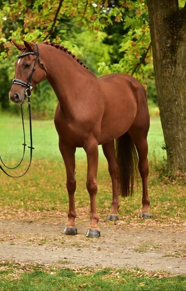 Te koop: 6-jarige Hannoveraanse merrie, 172 cm groot. Ze is opgeleid tot M-niveau dressuur en springt betrouwbaar 1,25 m. Absoluut gezond, gemakkelijk in de omgang en zonder ondeugden - ook geschikt voor kinderen of beginners. Bloedlijnen: Chacco-Blue × Canturo × Sir Shutterfly - een sterke afstamming voor zowel dressuur als springen. Alle vaccinaties en papieren zijn up-to-date. Vervoer kan overal geregeld worden. Meer informatie, foto's en video's beschikbaar via WhatsApp: +36 30 479 9923.