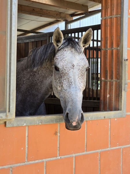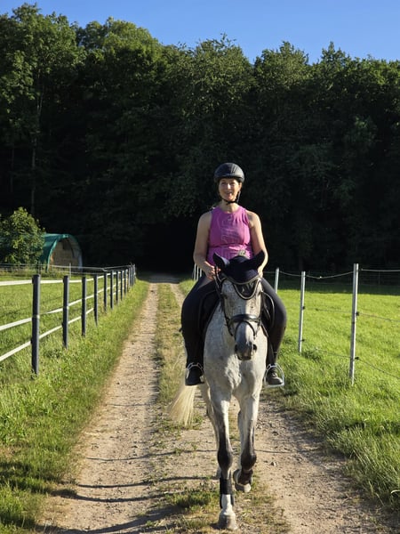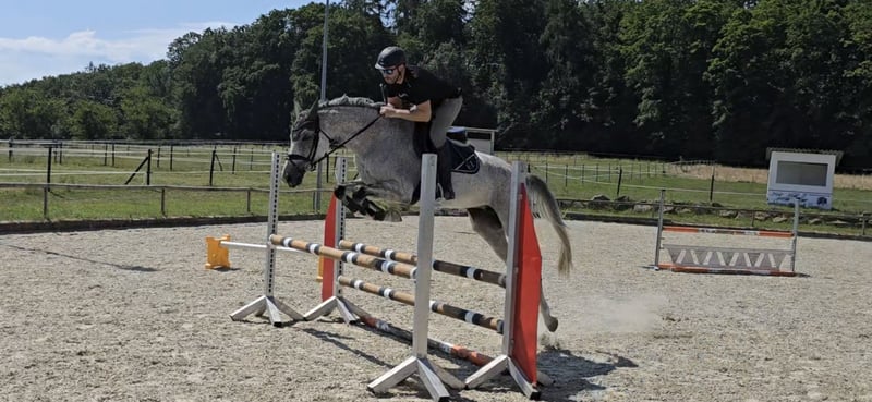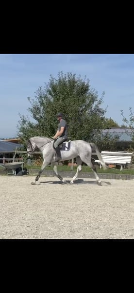 For sale is our beautiful 7-year-old gray mare Queenie (competition name Chaos Queen) with a height of 1.66m. She is suitable for beginners, family-friendly, trail-safe, and easy to load, and she has also been successful at competitions. Since the jumping between her and me is not optimal, we are now looking for a suitable partner. She is very unflappable and can be ridden by beginners both in the arena and on the trails. My 7-year-old daughter is also taking her first lunge lessons on her, and she handles everything very calmly. Playing small children next to the arena, tractors, dogs, and road traffic are no problem for her at all. She also achieved a great SLP with an overall score of 8.5 and has already had a wonderful foal. An up-to-date vet check is available: with radiological findings, but clinically absolutely unremarkable and without any restrictions on rideability. This is not an urgent sale. We are looking for a great home for this wonderful mare.