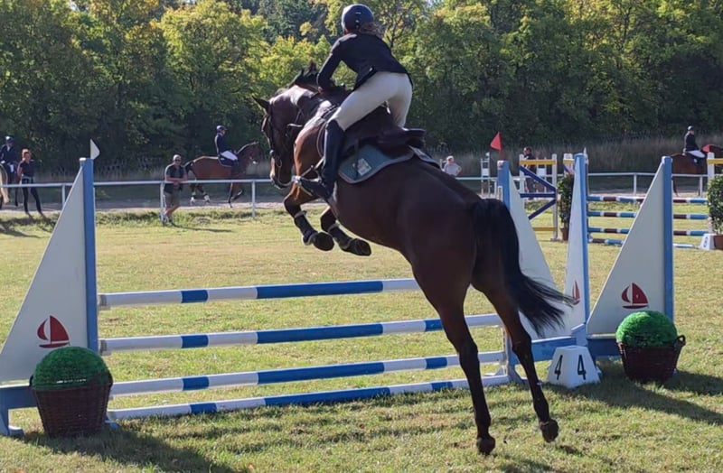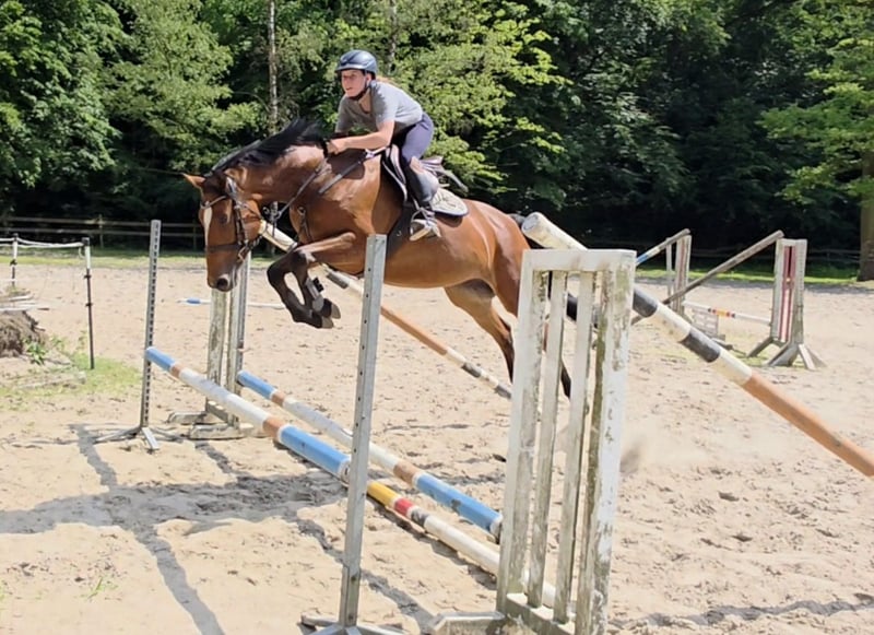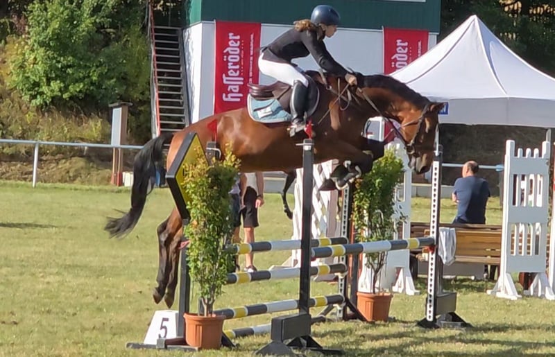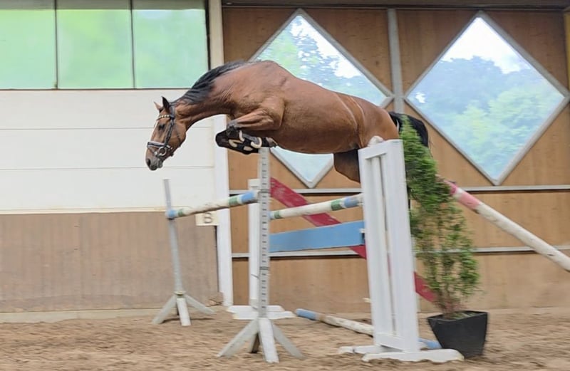 Talented mare with top pedigree – Vivant van de Heffinck x Balou du Rouet This stunning mare impresses not only with her type and correct conformation but especially with her enormous jumping ability and outstanding lineage: Vivant van de Heffinck – internationally highly successful and known for rideability, scope, and attitude – meets the proven Balou du Rouet, who stands for performance, technique, and athleticism. Vicky presents herself with elastic movements and plenty of scope, take-off, and reflexes over jumps. Initially used for breeding, she was gently started under saddle by a girl and prepared for her career as a show jumper. She successfully mastered her first training competition with flying colors. She appeared very cool and composed in the unfamiliar arena and was easy to handle. This pleased us greatly and makes us eager for more. Further competition appearances are planned. She has also been ridden in lessons by a talented 14-year-old girl. Vicky can be ridden well in the three basic gaits, completes a course under the rider, and goes boldly and fearlessly out on the trails, even alone. She shows herself to be very rideable, motivated, and willing to perform under the rider, bringing everything needed for a successful future in higher-level show jumping. She is suitable for both ambitious amateurs and professionals and is a true athlete with a lot of potential. However, I could also see her in eventing or with sensitive, demanding leisure riders. In handling, Vicky is a treasure and gets along well with other horses. Nevertheless, she is not a beginner's horse yet, as she is still at the beginning of her career and needs to be ridden relatively delicately. 7-year-old DSP mare, by Vivant vd Heffinck x Balou du Rouet, 1.67m, Clinical exam and X-rays available. Video: https://youtu.be/QlDxzudL9vw?si=BXU5bgyQoZtdlkWF Video: https://youtu.be/gExWz_5FHF0?si=Qyl8TBAYX6c0MNGb https://youtu.be/vbjhTluvnjQ?si=oRGG1LbzF-WllteC https://youtu.be/lr6gw5Ymwj4?si=N_NOMu-V-paZ_LtG "Videos, training highlights, and further impressions of our sales horses can also be found on Instagram: [maresi_lange]. There you will get additional insights and a closer look at the horses’ development." The description of the horse is based on our subjective impressions and experiences and is not a warranty or guarantee of characteristics. Riding trials are at your own risk. For presenting/riding trials of the horse, we charge a fee of 30 euros, which will of course be deducted from the purchase price of the horse.