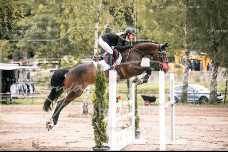 Bitte bis zum Ende lesen! Zum Verkauf steht diese 7 jährige Stute von Balou Star aus einer Mutter von Quantas de L. Sie ist in ihrer gewohnten Umgebung äußert leichtrittig und macht einen super vorsichtigen Sprung. Sie konnte sich bereits in Springpferde A platzieren sowie in einer A Dressur den zweiten Platz belegen. Zuhause ist die Stute sehr brav und willig bei der Arbeit auch im Umgang/ Schmied/ verladen macht sie keine Probleme. Ins Gelände geht sie anständig und mit Freude mit einem Begleitpferd. Alleine habe ich es noch nicht ausprobiert. Nun zum großen ABER: leider zeigt sich meine Stute auf dem Turnier nicht immer kompromissbereit. Sobald sie von ihren Freunden auf dem Hänger weg soll wird sie sehr unsicher. In solchen oder ähnlichen Stresssitustionen reagiert sie leider etwas stur aus ihrer mentalen Überforderung heraus. Da ich im Moment zu wenig Zeit habe um der Stute mit diesem Problem gerecht zu werden steht sie zum kleinen Geld zum Verkauf. Ich denke ideal wäre eine Kombination aus stark reitendem Trainer mit Amateur Duo oder aber jemand der ihr die nötig Zeit und Vertrauen gibt um ein tolles Turnierpferd zu werden. Mit viel Geduld und Spucke bekommt man das bestimmt in den Griff. Ihre Schwester aus der gleichen Mutter war als Jungpferd ebenfalls etwas speziell und geht heute erfolgreich 1,40m springen. Röntgenbilder ohne Befund liegen vor. Für weitere Fragen / Videos bitte anrufen.