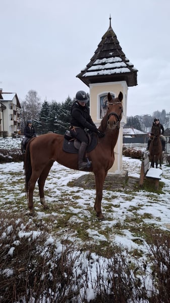 Athletic, Sensitive Chestnut Mare with Potential for Advanced Sport For sale is a stunning chestnut mare, a German sport horse, approximately 16.1 hands high. She will turn seven years old on March 19, 2026. The mare is lightly backed; however, she has only been under saddle for a few months and is therefore sold as a raw, untrained horse. During this time, she has shown a strong willingness to learn and impressive movement. She has been worked in dressage but also demonstrates a lot of motivation and talent in jumping – she is not a stopper and impresses with a very good work attitude. She is also experienced in the terrain, calmly goes through water, and has been regularly ridden out on hacks. In character, she is sensitive, intelligent, and somewhat demanding. She requires an experienced, consistent, and patient handler who can provide her with security and further her development. In daily handling, she can be somewhat challenging – especially at the trailer, farrier, and veterinarian, where she can be demanding and needs a calm, confident rider or handler. I am offering her solely due to lack of time, as my professional and private commitments prevent me from giving her the training she deserves. With proper support, she has great potential for high-level competition and will undoubtedly bring much joy to a professional or ambitious rider. However, she is not suitable for beginners, hobby riders, children, or as a family horse.