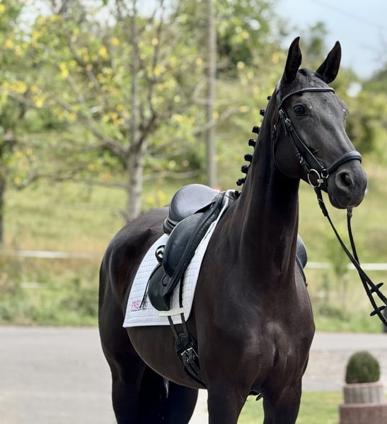 This highly elegant 7-year-old mare, with an excellent pedigree, combines a lot of quality with the best character traits. She has three very good basic gaits and also shows great rideability; she is competition-ready and can be used immediately in class A, already mastering some higher movements. Prospectively, this wonderful mare has everything it takes for the big dressage arena! Due to her particularly sweet nature and her great quality, she is suitable for both less experienced riders and ambitious competition riders! The mare is healthy and robust, easy to shoe and load, goes calmly out on trails, and always behaves well both in handling and under saddle. ➡️ If needed, we offer our clients a transition period with training and riding lessons. Feel free to contact us anytime for further questions or to arrange a personal meeting: 015202833968 ➡️ Please note that to protect our horses, we charge a fee of €45 for showing and trial riding. ➡️ You can also find more information on our social media channels: To the Instagram profile: PREcaroPferde https://www.instagram.com/precaropferde?igsh=MThzaDBmNTNpdW1mMg%3D%3D&utm_source=qr To the Facebook profile: Carolin Nesarajah https://www.facebook.com/share/1AyDKVaDnU/?mibextid=wwXIfr