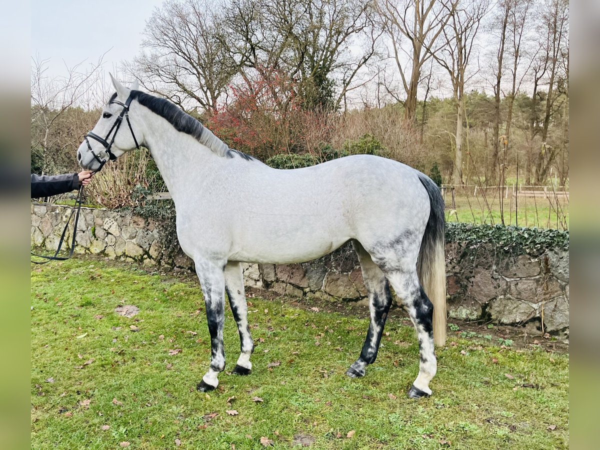 For sale is this 8-year-old grey mare by Kasanova de la Pomme out of Coupe D’Or. The mare has competed successfully in show jumping up to 115 cm and has achieved placings. She has also completed a CCI1* eventing competition. In dressage, she presents a lovely picture and is very responsive and easy to ride. She does not buck or rear and is always manageable. Overall, she has a calm temperament and is very well-behaved in handling. She has never been injured under my care.