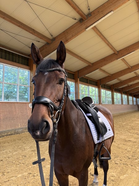 Verkaufe bildschöne Stute Cassy Zum Verkauf steht eine wunderschöne deutsche Sportstute, geboren im Jahr 2017. Die Stute besticht durch ihr freundliches Wesen und ihre beeindruckende Erscheinung. Mit einem Stockmaß von 165 cm ist sie sowohl für den Freizeitbereich als auch für den sportlichen Einsatz bestens geeignet. Sie liebt es zu springen und zeigt dabei höchstes Potenzial, das jedoch meinerseits nur wenig gefördert wurde. Trotz schwachem Springreiter hat sie stets ihr bestes gegeben und sich nicht einschüchtern lassen bei schlechten Distanzen. Unarten wie Bocken oder Steigen kennt sie nicht! Sie ist für jeden Spaß zu haben und zeigt stets Neugier bei neuen Herausforderungen. Sie ist regelmäßig geimpft und entwurmt, sowie barhufer. Ebenfalls wurden jährliche Zahnkontrollen und Physiobehandlungen durchgeführt. Cassy wird nur in gute Hände abgegeben! Platz vor Preis! Sie wird nur wegen Zeitmangel verkauft, da ich mich auf mein Studium konzentrieren muss. Bei Interesse oder für weitere Informationen stehe ich gerne zur Verfügung.