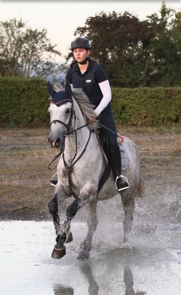 Berry est une jument alezane de 9 ans, issue de Cool Man K x Clerus. Elle a remporté des épreuves de saut d'obstacles et a également obtenu des résultats en dressage A et en concours complet dans la catégorie A. Son domaine de prédilection est le saut d'obstacles, où elle se distingue par une excellente maniabilité et une attitude sportive… on voit tout de suite qu’elle prend plaisir à sauter. Elle est montée exclusivement par mes deux enfants (13 et 17 ans), avec une bride d’eau classique et sans éperons. Au niveau du comportement, elle est facile à gérer, calme chez le maréchal-ferrant, ne montre aucune peur au défilé et est sûre en terrain varié. Elle est logée chez nous en box et paddock, et sort toute l’année avec un groupe mixte en pâture. Un cheval doté de puissance et de clairvoyance, parfait pour un cavalier ambitieux recherchant un cheval de sport performant, prêt à partir à l’aventure. Pour plus d’informations et vidéos, n’hésitez pas à me contacter. Téléphone : 06 00 00 00 00