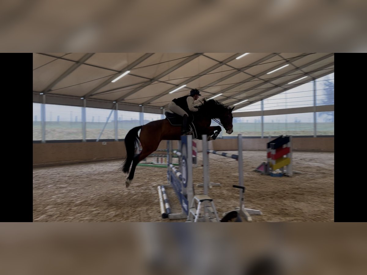 Feli is an exceptionally sweet and friendly mare, who impresses both in daily training and at competitions with her positive attitude. She has been handled gently so far and has not yet reached her limits – at home, she already hints at the true potential she possesses. Currently, Feli competes up to 115 cm, but she definitely has the talent for higher classes. She stands out especially for her consistent willingness to perform in the show jumping ring: a real fighter who always wants to get to the other side and consistently strives to do everything right. For further questions or videos, please feel free to contact me at: 0171/8022292.