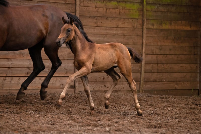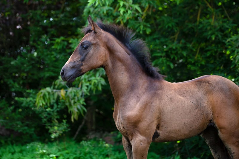 Diese dunkelbraune Schönheit besticht schon jetzt mit Präsenz und hervorragenden Grundgangarten. Ihr Vater, der erfolgreiche Dressurvererber "Fürst Wettin", hat ihr durchaus das Potential für das große Viereck mitgegeben. Sie ist sehr menschenbezogen, neugierig und unerschrocken. Unsere Fohlen wachsen im stabilen Herdenverband in Offenstallhaltung mit täglichem Händling auf. Das sorgt für gute Sozialisierung und Gesundheit. Ihre Mutter (aus eigener Zucht) zeigt sich unter dem Sattel arbeitsbereit mit klarem Kopf. Fiona bringt alle Voraussetzungen für einen verlässlichen Partner in Sport und Freizeit mit.