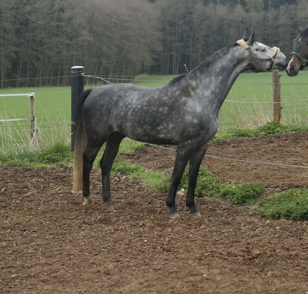 For Sale: German Warmblood Gelding An impressive German Warmblood gelding, born in 2015, is available for purchase. Standing approximately 16.1 hh, he captivates with his elegant gray coat. This talented gelding shows great potential in dressage as well as jumping, making him suitable for eventing too. He impresses with his excellent movement, balanced temperament, and willingness to learn. He is suitable for both experienced riders and ambitious amateurs who wish to further his training. The gelding is well-behaved, well-mannered, and has a solid basic education. For inquiries or more information, please feel free to contact me. Viewings and trial rides can be arranged by appointment.