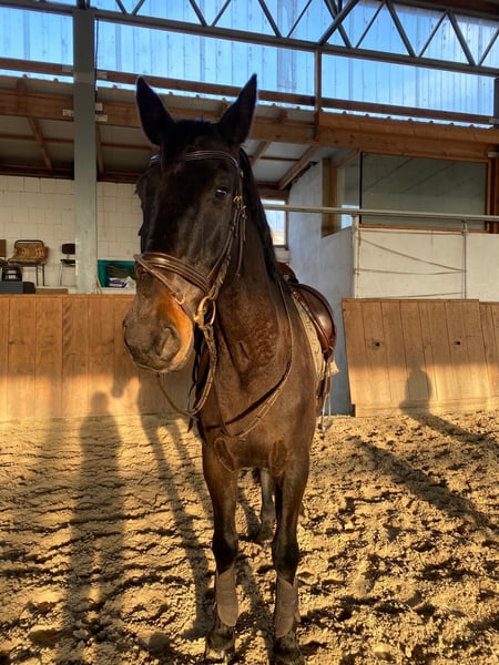Leider ist unser Familienpferd aufgrund einer Sehnenverletzung und trotz Behandlung nicht mehr belastbar, weshalb wir uns dazu entschieden haben, ein neues 5*-Zuhause für ihn zu suchen. Wir möchten ihn daher als Beistellpferd in liebevolle Hände abgeben. Luigi ist ein 18 jähriger DSP-Wallach, der uns seit seinem 12. Lebensjahr begleitet. Er ist im Umgang lieb und in der Herde sehr verträglich. Bis zu seiner Verletzung ist er als Allrounder in Dressur, Springen und VS bis L auf dem Turnier unterwegs gewesen. Nun ist es allerdings an der Zeit, dass er in den wohlverdienten Ruhestand geht.