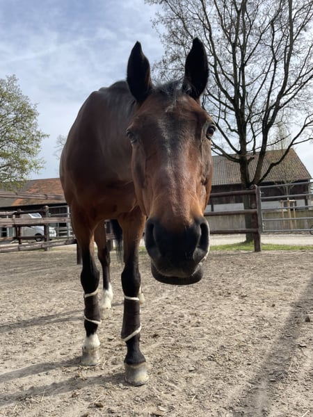 Mein langjähriger Sportpartner im Springsport, genießt inzwischen seinen wohlverdienten Ruhestand und sucht ab Januar eine zuverlässige Person, die sich täglich liebevoll um ihn kümmert. Da ich selbst für vier Monate ins Ausland gehe, möchten wir ihm für den Zeitraum Januar bis April ein schönes, vorübergehendes Zuhause ermöglichen. In dieser Zeit stellen wir ihn zur Verfügung; Tierarztkosten übernehmen selbstverständlich weiterhin wir. Ab April werde ich voraussichtlich in München sein. Daher freuen wir uns besonders über einen Stall in oder um München, der viel Bewegung ermöglicht – idealerweise ein Offenstall oder ein Stall mit täglichem Paddock- bzw. Koppelgang, auch im Winter. Eine anschließende Reitbeteiligung wäre bei gegenseitigem Einverständnis gern möglich. Er ist äußerst brav, verträglich mit anderen Pferden und lässt sich noch leicht reiten. Viel wichtiger ist ihm aber Aufmerksamkeit, Pflege und Bewegung – er genießt jede Form von Zuwendung und ist im Umgang ein absoluter Schatz.