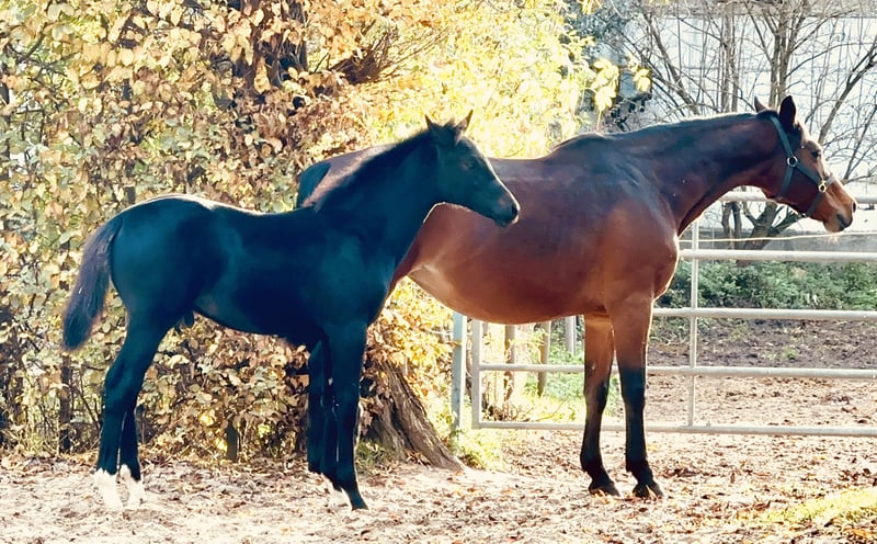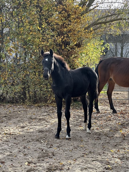 For sale: German sport horse stallion – born July 2024 We are offering a promising German sport horse stallion, born in 2024. This elegant black colt impresses with its striking appearance and outstanding jumping talent. His sire, Cordess, has achieved international success alongside Olympic gold medalist Christian Kukuk and Philip Weißhaupt. His dam, La Bell (by Landrebell), is a resilient and highly reliable hunting and jumping horse, known for her exceptional character. She has passed these qualities fully on to her offspring. This colt combines two prestigious and successful lines in show jumping. With a solid foundation, notable bravery (as seen in the video – when he first encounters an obstacle during foal registration), and a good temperament, he also has the potential for licensing. This colt is well-suited for show jumping or eventing in the future. His robust constitution and balanced nature make him a dependable partner for sport and breeding. If interested, we look forward to hearing from you to discuss further details and arrange a viewing.