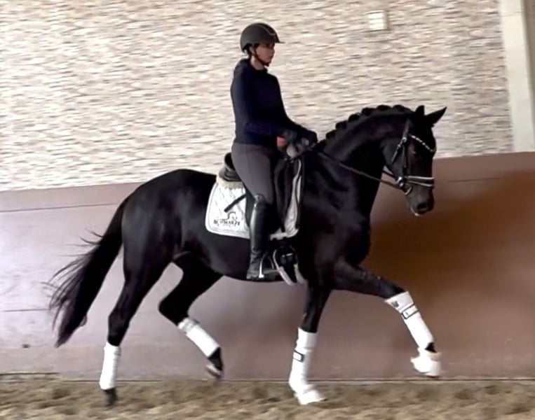 Liebe Interessenten, Für Terminvereinbarungen Probereiten senden Sie mir bitte eine WhatsApp. Für weitere Fragen bin ich tagsüber per WhatsApp erreichbar, telefonisch erreichen Sie mich am Besten zwischen 16 und 19 Uhr. Ich freue mich auf eine Kontaktaufnahme www.angelina-devittorio.de ⭐️Turmalin⭐️ Alter: 3,5 Jahre (2022) Größe: ca 1,66 m Abstammung: Total McLaren x Fürstenball Ausbildungsstand: angeritten AKU: Gute Röntgenbilder vorhanden Dieser traumhafte Youngster begeistert durch seine außergewöhnlich schöne Optik und seine hohe Qualität in allen drei Grundgangarten. Ein traumhaftes Nachwuchspferd, das durch seine Optik und Präsenz alle Blicke auf sich zieht . Mit enormem Ausdruck, hervorragender Rittigkeit und einer feinen, angenehmen Art unter dem Sattel präsentiert er sich bereits jetzt als echtes Nachwuchstalent mit Potenzial für das große Viereck. Er ist solide und pferdegerecht angeritten, zeigt sich stets motiviert und möchte seinem Reiter gefallen. Sein ausgeglichener, lieber Charakter macht ihn zu einem besonders angenehmen Partner, der trotz seiner Jugend auch für ambitionierte Amateure interessant ist – selbstverständlich mit entsprechender Jungpferdeerfahrung. Ein vielversprechendes Nachwuchspferd besonderer Güte, das mit seiner Qualität und seinem Auftreten begeistert. ⚜️Tel: 0171-3438949 ⚜️a.devittorio@web.de ⚜️https://www.ehorses.de/angelinadevittorio Facebook und Instagram Angelina De Vittorio