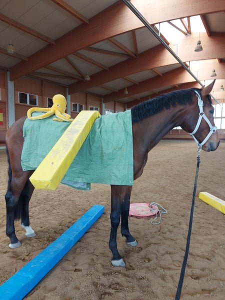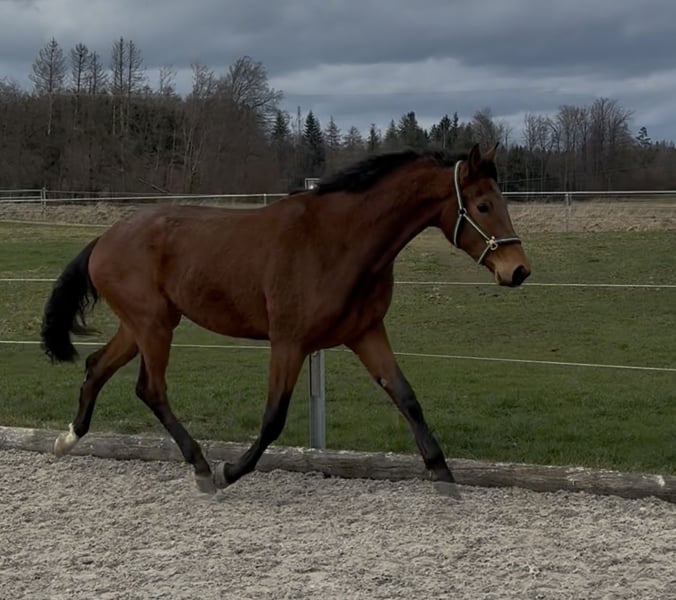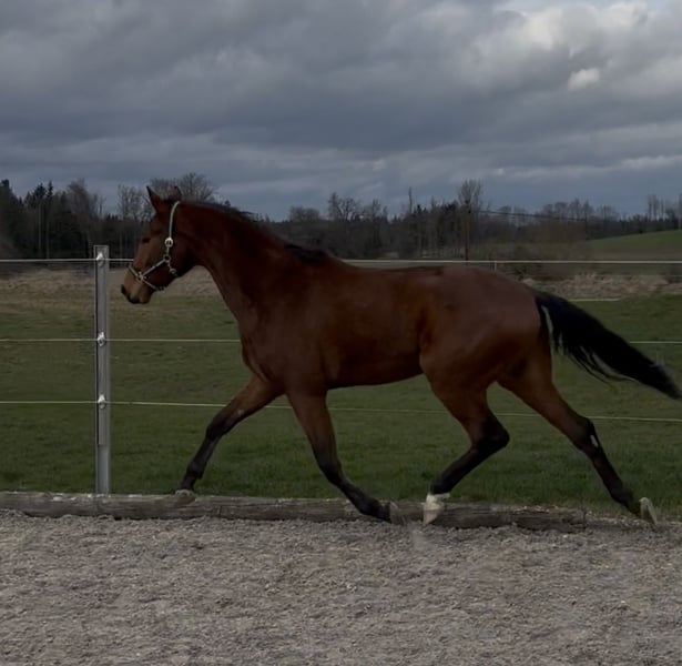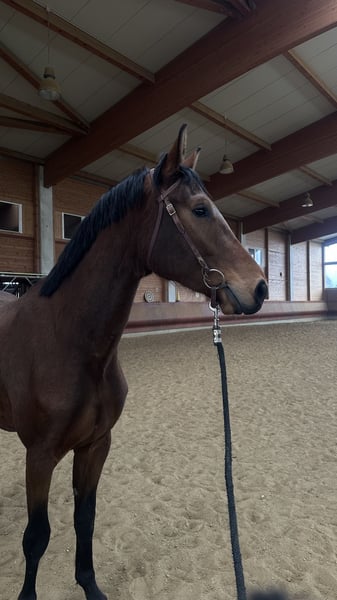 Escalante, affectionately called Calli by us, is a 3-year-old DSP gelding standing at 16.1 hands. He has come to me as a colt and is now getting to know the rider at his own pace, always remaining calm in every situation. His current training level includes basic ground work in the arena, where he impresses with soft, expressive gaits. He is the type of horse that prefers to approach new things slowly and calmly, gradually gaining confidence. Therefore, he is an excellent choice for ambitious leisure riders. His breaking-in process was incredibly straightforward. He trusts humans and can resolve uncertainties calmly. This already makes him a reliable partner for recreational riding. In terms of character, he is very well-behaved and consistently manageable on the ground. He gets along well with other horses and is playful. He is currently housed in a young gelding group. He holds a middle position in the herd hierarchy but also gets along well with mares. For questions, please contact me by phone or WhatsApp at 01702924716. Private sale.