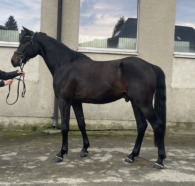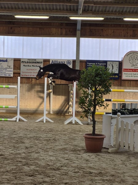 Zum Verkauf steht ein 3-jähriger Wallach von Zenegro aus einer Lahnstein Mutter. Zentano HL zeigt gutes Potenzial am Sprung und bringt 3 hervorragende Grundgangarten mit. Er hat ein sehr ausgeglichenes Gemüt, ist dem Menschen sehr zugewandt und lernt schnell. Zurzeit befindet er sich in der Grundausbildung. Er kennt longieren und den Reiter in allen drei Gangarten an der Longe. Im Gelände war er schon als Handpferd mit. Zentano hat diese Jahr am Freispringchampionat des Vogtländischen Pferdezuchtvereins teilgenommen. In Vorbereitung darauf war er in verschiedenen fremden Hallen und zeigte sich dabei immer gelassen und brav. Zentano ist halfterführig, sicher im Straßenverkehr, brav am Putzplatz und beim Tierarzt, sowie Schmied- und verladefromm. Er kommt direkt vom Züchter und ist dort in einer kleinen Herde aus Wallachen aufgewachsen. Er kennt Boxenhaltung mit täglichem Koppelgang im Herdenverband. Besichtigung und Probereiten jederzeit möglich. Kontakt: H. Lienemann 0171 3717332 (Nur Anrufe bitte!) S. Kalf 0152 03350732 (WhatsApp möglich
