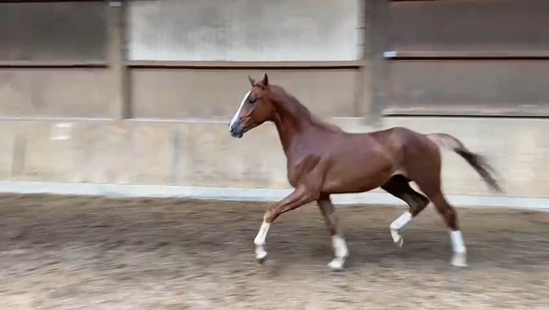 Zum Verkauf steht ein besonderes Nachwuchspferd von D'avie FRH x Rubin Cortes OLD, welcher mit seiner bildschönen Zeichnung direkt alle Blicke auf sich zieht. Vier weiße "Stiefel", ein freundliches Gesicht und ein harmonisches Exterieur zeichnen ihn aus. Er wurde Mitte 3-jährig aufgestallt und angeritten, somit ist sein Ausbildungsstand als "frisch angeritten" zu bezeichnen. Ein Ausbildungspferd mit guter Grundqualität und moderner Optik für den Turnier- oder Freizeitreiter mit Jungpferdeerfahrung. Seine direkte Mutter "Ruwina 3" war unter Phillip Hess S*** siegreich. Sein Vater D'avie wurde Doppelweltmeister der 6- und 7-jährigen Dressurpferde unter Severo Jurado Lopez und war im Alter von erst 9 Jahren unter Lisa Müller bereits Grand PRIX siegreich. Er besticht nicht nur mit seinem besonderen Bewegungstalent, sondern auch durch seinen erstklassigen Charakter und seine Rittigkeit. Bereits jetzt ist D'avie dafür bekannt sein hervorragendes Interieur und Exterieur an seine Nachkommen weiterzugeben. Sein Sohn "Democracy" wurde Prämienhengst auf der Hannoveraner Körung 2020 und deckt auf dem Gestüt Bonhomme. *Das Freilauffoto zeigt ihn 2,5-jährig"