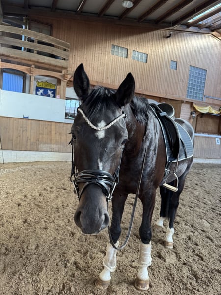 Aufgrund persönlicher Umstände gebe ich wenn wirklich alles passt meinen 3,5 Jährigen Wallach in sportfördernde Hände. Er ist charakterlich einfach ein Traum, deswegen kann ich ihn mir auch für eine Jugendliche mit Trainer vorstellen. Er wurde bei uns im März schonend angeritten und wird seitdem einmal die Woche geritten. Er war schon beim Turnier dabei und war dabei absolut anständig und grasst ganz entspannt neben dem Hänger. Seine 2 jährige Schwester steht auch bei uns und kann gerne besichtigt werden. Seine Mutter ist Elitestute. Bei Interesse bitte anrufen.